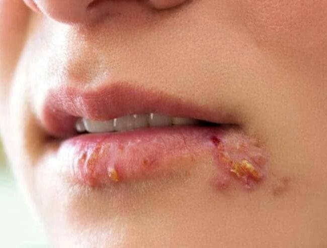 A herpes labial, também chamada de herpes simples, é causada pelo vírus herpes simplex tipo 1 (HSV-1). Uma vez infectado, o vírus permanece latente nas células nervosas indefinidamente e pode se reativar posteriormente, causando bolhas dolorosas, geralmente ao redor dos lábios, nariz ou queixo. A reativação é desencadeada por fatores como estresse, doenças, alterações hormonais, sistema imunológico enfraquecido ou exposição excessiva ao sol.