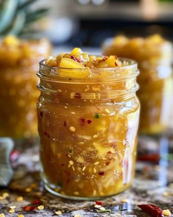 Com um toque picante, este molho agridoce de abacaxi e pimenta é uma deliciosa combinação de sabores azedos e doces. Ele me lembra de todos os piqueniques de verão que costumávamos fazer na fazenda da nossa família, sentados ao redor da grande mesa de madeira, com risadas ecoando pelos campos enquanto nos vestíamos com roupas xadrez. O abacaxi complementa bem o calor da pimenta, adicionando um toque exótico à nossa clássica refeição do Meio-Oeste americano. Este molho é uma ótima opção tanto para um churrasco no quintal quanto para dar um toque especial às refeições do dia a dia.