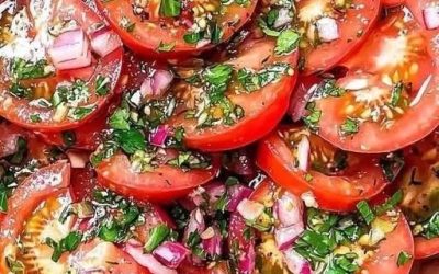 Uma salada vibrante e saborosa com tomates maduros marinados em vinagrete de ervas. Ingredientes: 680 g de tomates maduros 6…