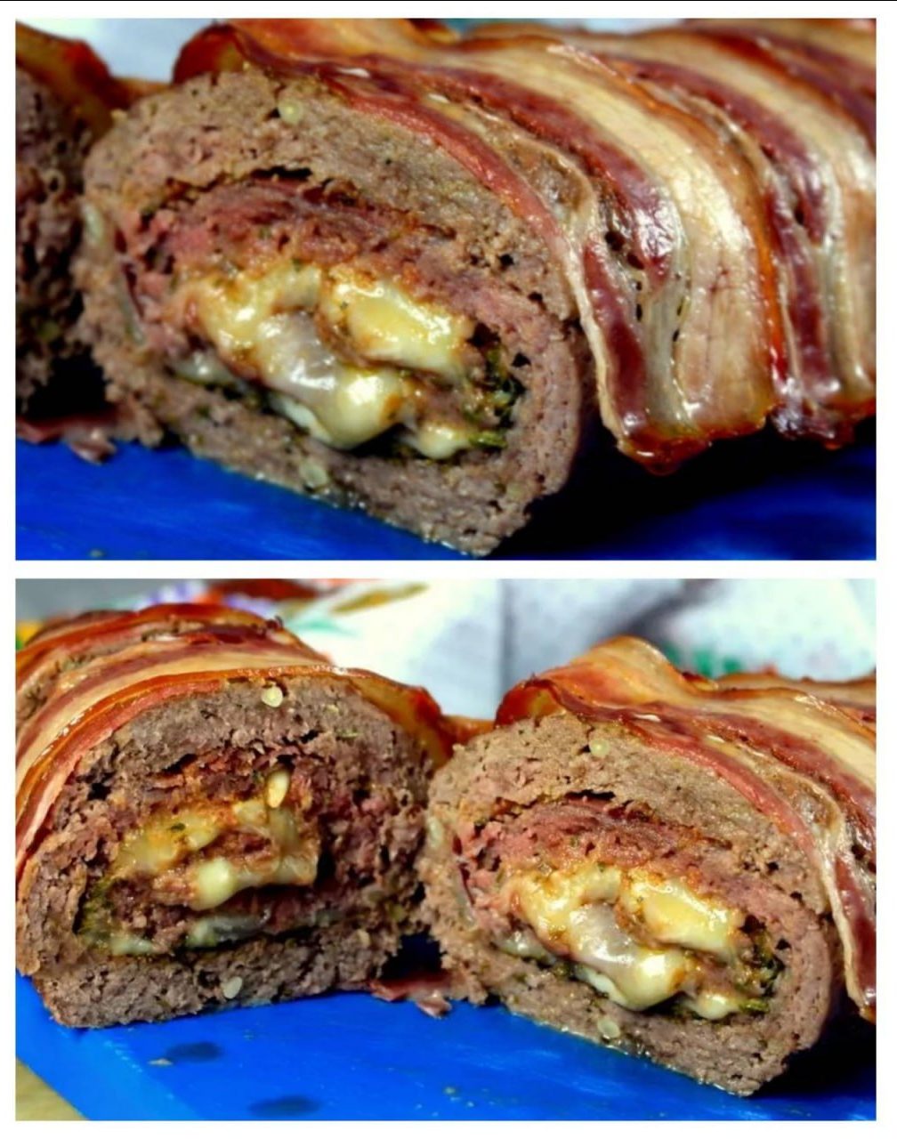 Modo de preparo do bolo de carne recheado com presunto e queijo: