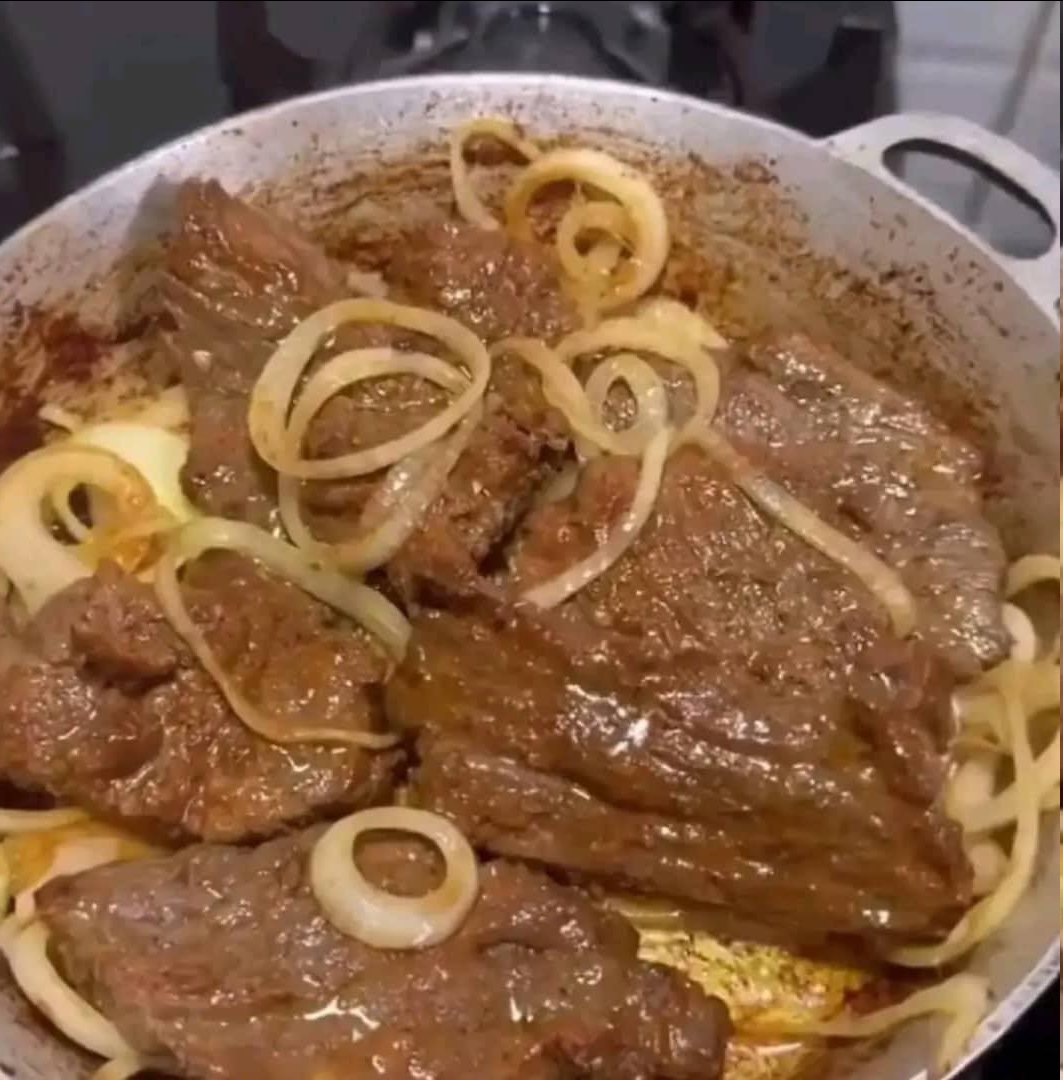 – 1,2 kg de carne bovina (fraldinha, contrafilé ou acém, cortada em bifes finos)