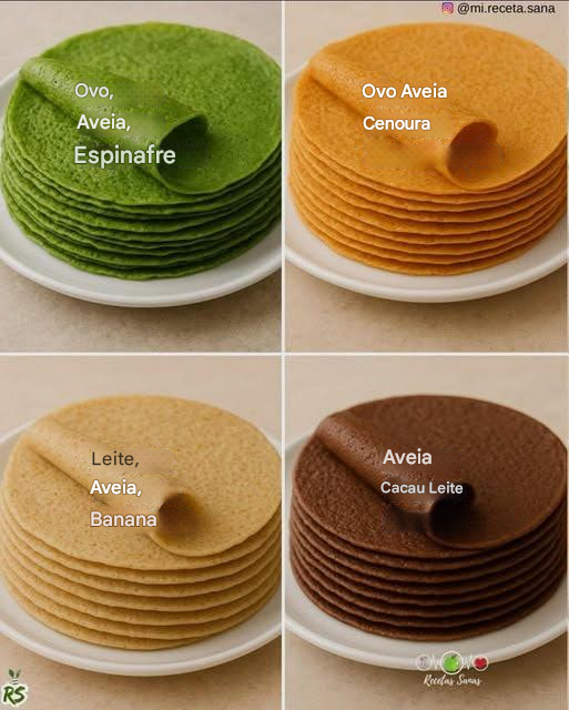 Abaixo, você encontrará diferentes ideias para crepes saudáveis com aveia: espinafre, cenoura, banana e cacau natural. Cada opção oferece benefícios únicos e sabores deliciosos. Perfeitos para cafés da manhã equilibrados, lanches energéticos ou jantares leves.