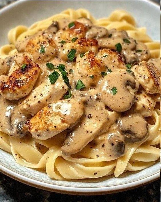 Este plato es ideal tanto para una comida familiar entre semana como para una cena más elaborada el fin de semana. La suavidad de la salsa blanca envuelve cada hebra de pasta, mientras que el pollo bien dorado aporta cuerpo y los champiñones añaden profundidad y un toque ligeramente terroso que equilibra perfectamente la cremosidad. Además, es una receta muy versátil, fácil de adaptar a distintos gustos y ocasiones.