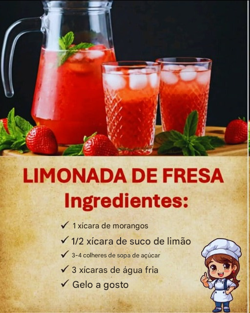 ✨ Quando o calor aperta ou simplesmente queremos desfrutar de uma bebida deliciosa e refrescante com um toque especial… nada como uma boa limonada de morango 🍓🍋. Esta receita não só é um clássico moderno que conquista jovens e adultos, como também tem o poder mágico de nos transportar diretamente para uma tarde ensolarada de verão, basta fechar os olhos e dar um gole 🌞💦.