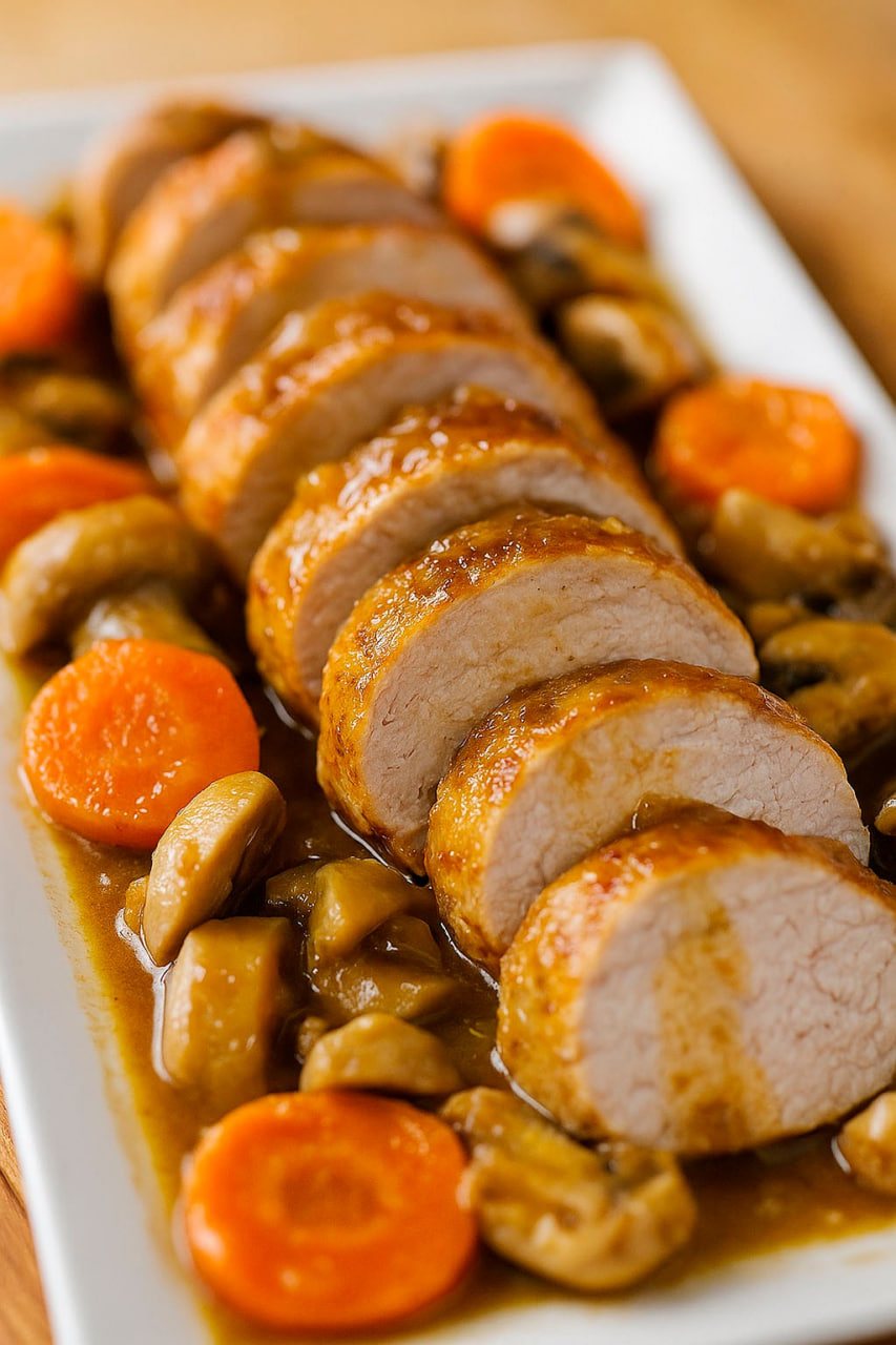 O lombo de porco ao molho de cerveja é uma daquelas receitas que surpreende pela simplicidade e sabor. A carne fica macia e suculenta, e o molho é incrivelmente aromático , graças à combinação de cerveja, cogumelos e o toque adocicado dos damascos secos. É um prato ideal para uma refeição em família, um jantar especial ou simplesmente para se presentear com uma experiência gourmet.