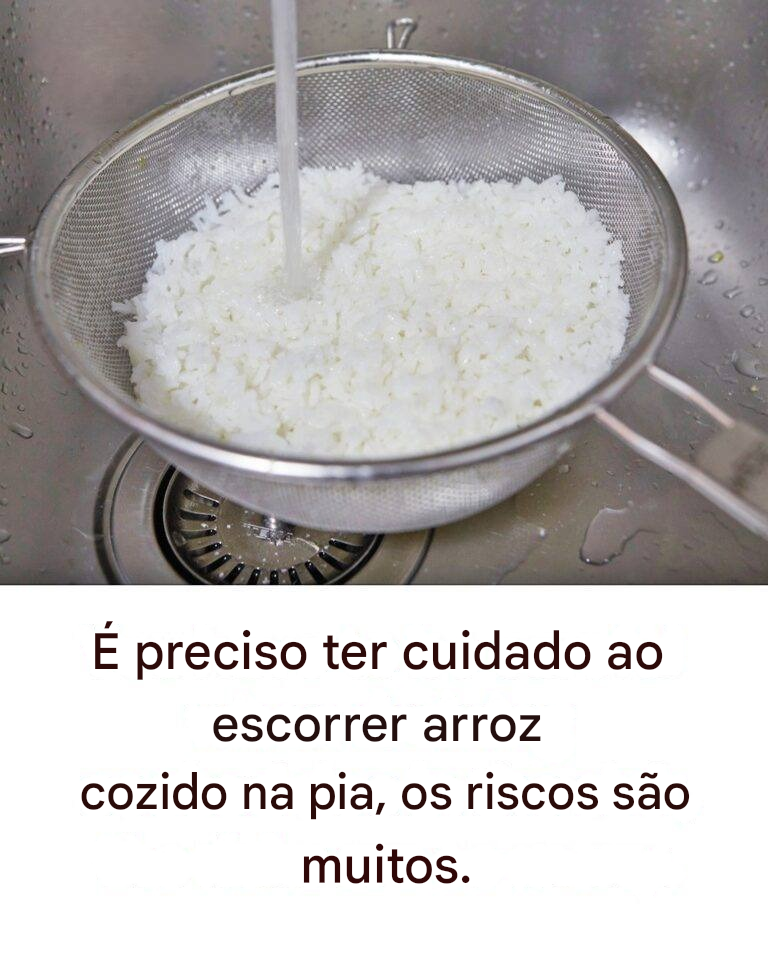 : Expansão: Os grãos de arroz continuam a expandir quando entram em contato com a água, mesmo após o cozimento. Quando o arroz é descartado no ralo, ele absorve água nos canos, inchando e podendo causar entupimentos.