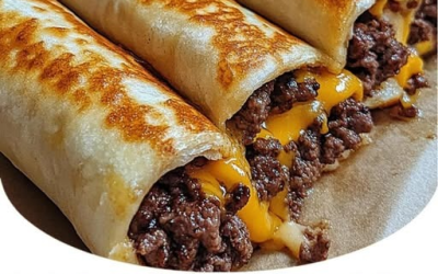Descrição: Esses enroladinhos combinam carne moída temperada, queijo derretido e tortilhas macias pinceladas com manteiga de alho. Eles têm o…