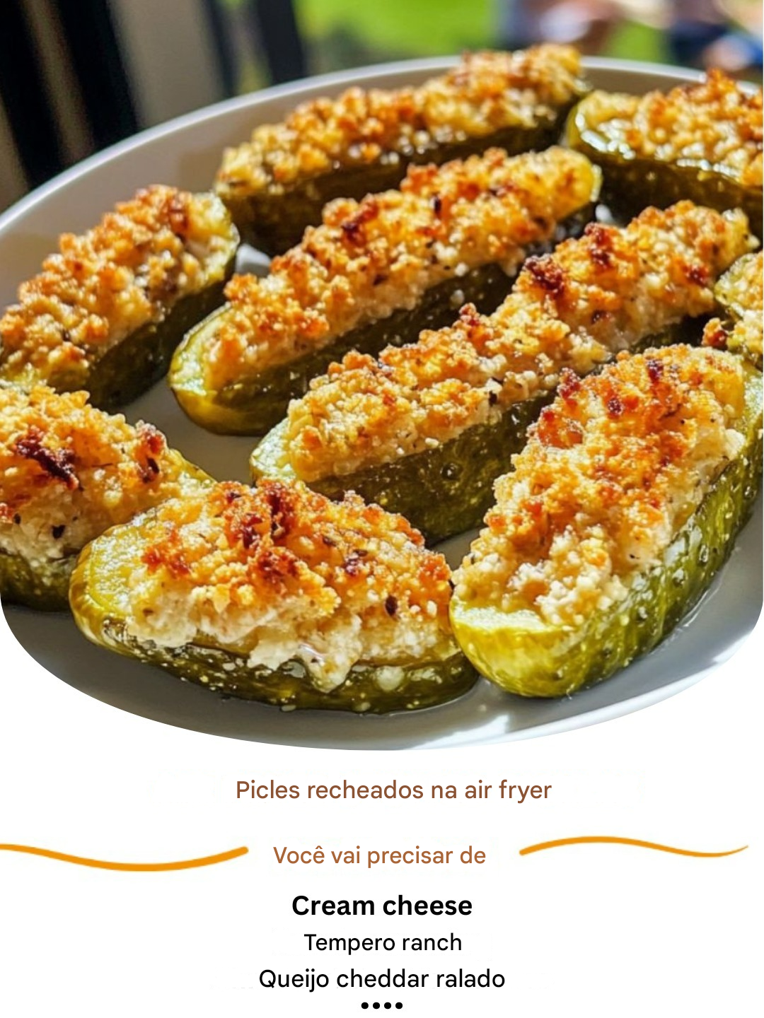 Esses picles recheados na Air Fryer são o petisco salgado perfeito! Picles crocantes e saborosos são recheados com um creme ranch cremoso, queijo e bacon, e fritos na air fryer até ficarem quentinhos e irresistivelmente cremosos. São incrivelmente fáceis de fazer e perfeitos para assistir a jogos, festas ou para um lanche rápido.
