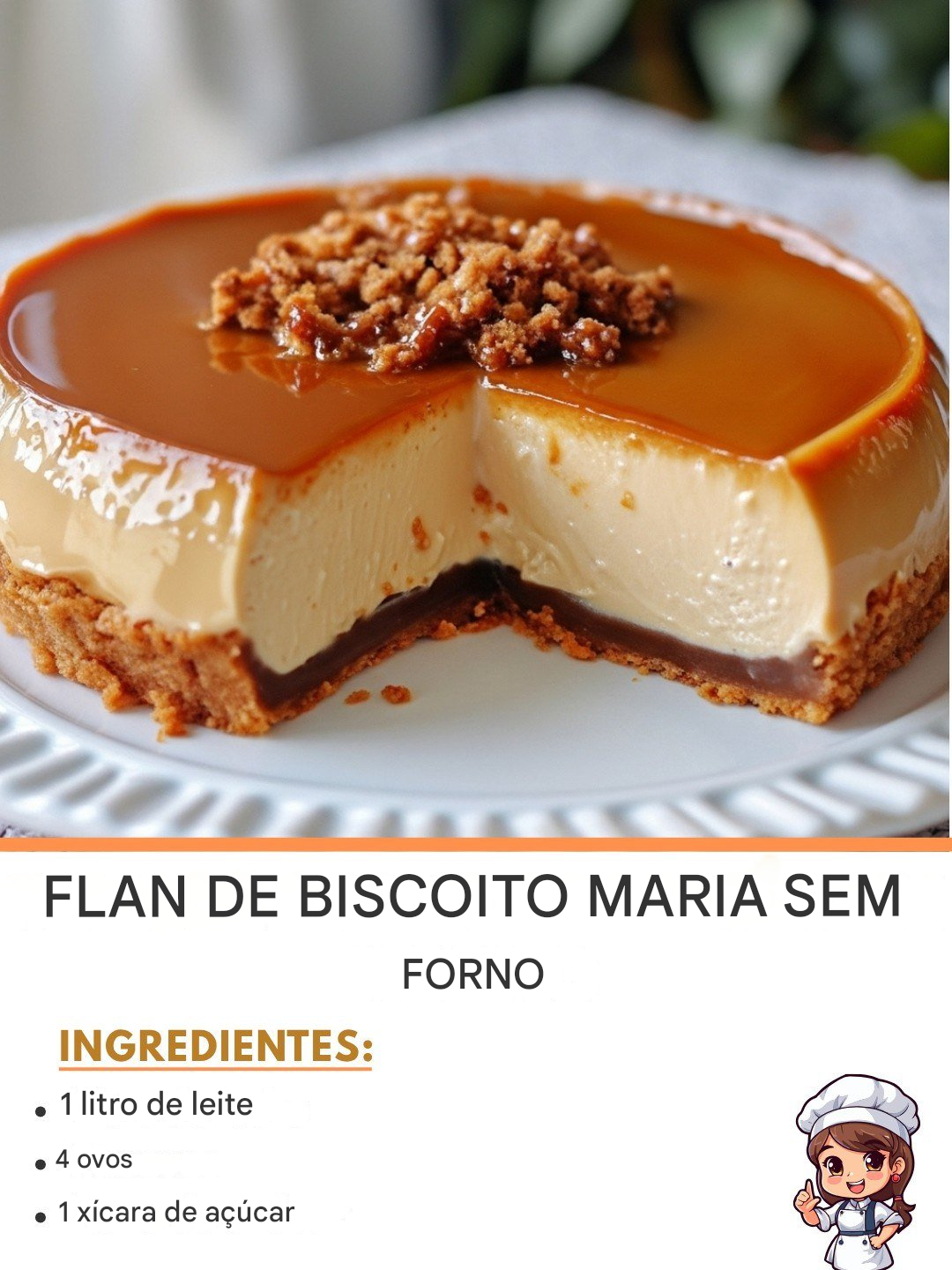 Pudim de biscoito Maria sem forno aziz boumdakonDecember 20, 2025 Ingredientes: 1 litro de leite 4 ovos 1 xícara de açúcar 1 pacote de biscoitos Maria (200 g) 1 sachê de coalho em pó (ou gelatina sem sabor) Caramelo líquido para o molde Instruções: Continua na próxima página Próximo »»