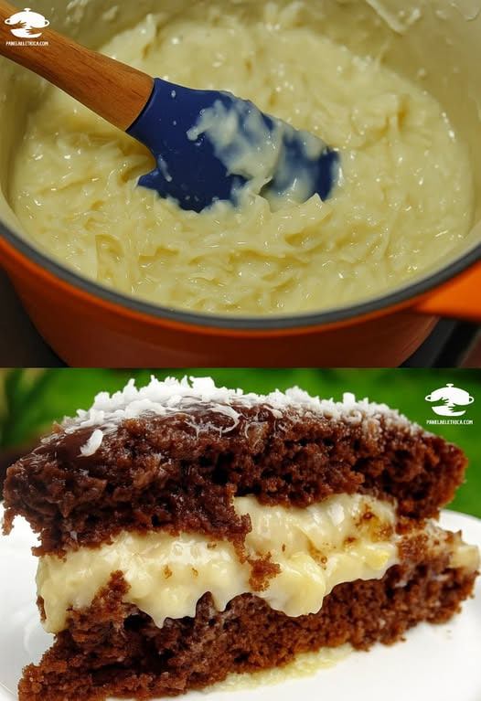 O recheio cremoso de coco é o coração deste famoso bolo de prestígio, uma sobremesa que combina a maciez do bolo de chocolate com o inconfundível sabor tropical do coco. Sua textura aveludada e doçura equilibrada fazem dele uma verdadeira joia da confeitaria caseira.