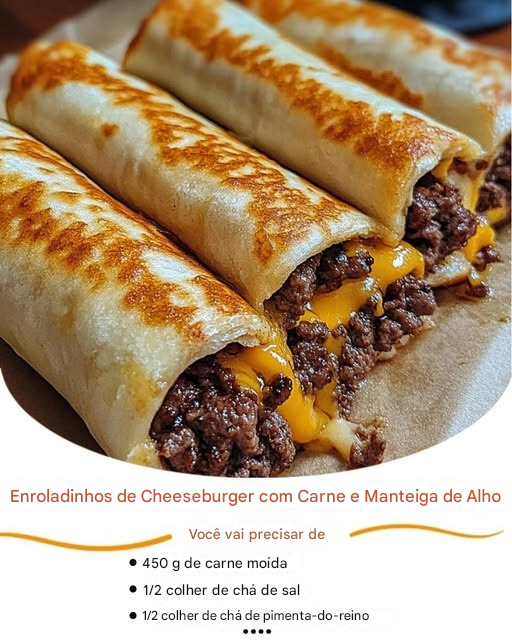 Esses enroladinhos combinam carne moída temperada, queijo derretido e tortilhas macias pinceladas com manteiga de alho. Eles têm o sabor de mini cheeseburgers envoltos em uma casquinha crocante e amanteigada — simples, agradam a todos e são cheios de sabor!