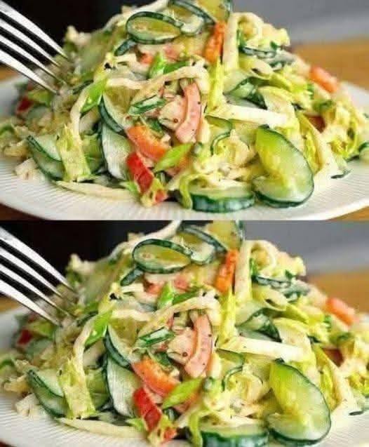 Em uma tigela grande, misture o repolho ralado, o pepino fatiado, o pimentão vermelho e a cebolinha picada. Se desejar, adicione endro ou salsa fresca picada para dar mais sabor.