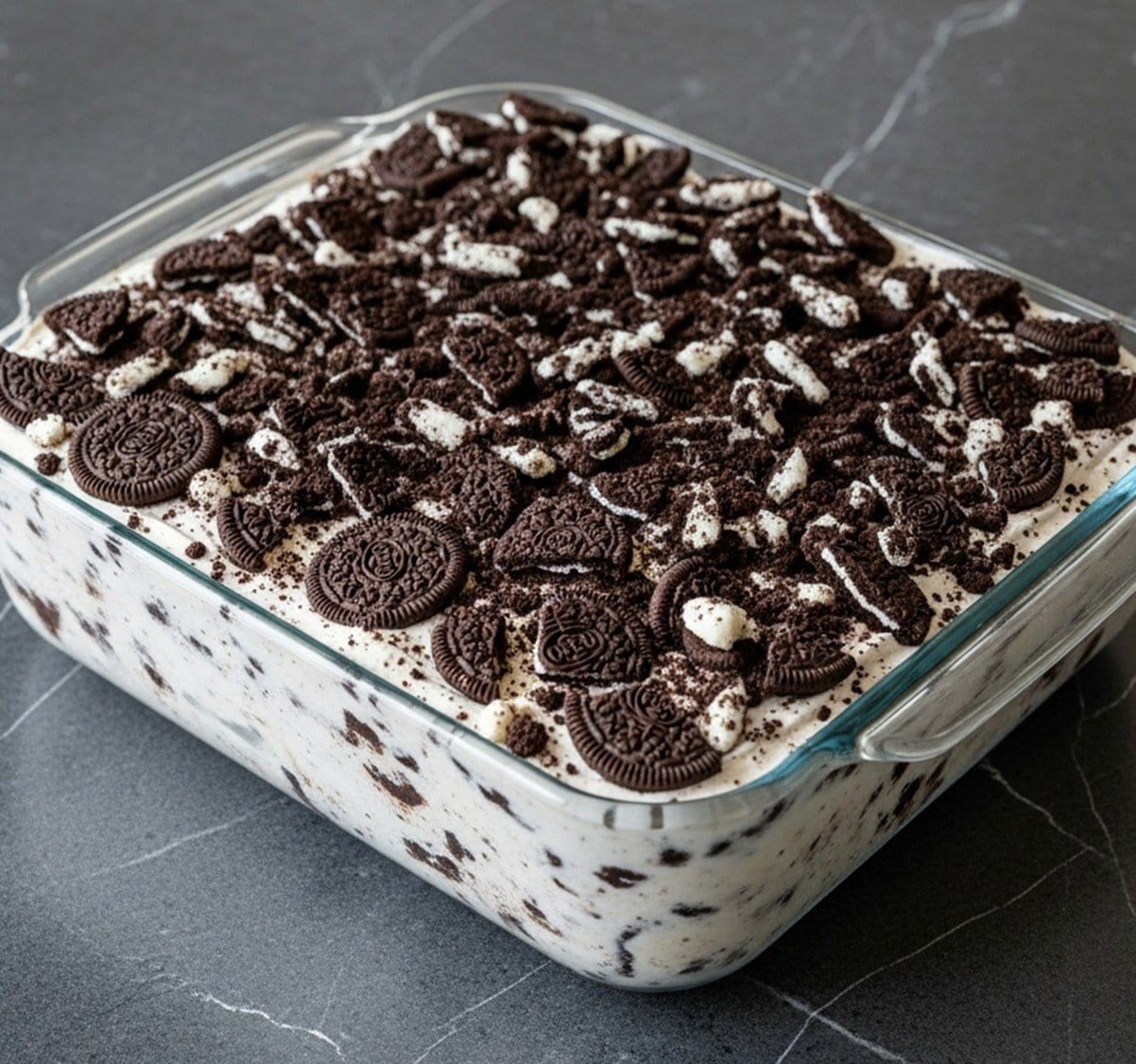 Textura dos sonhos: camadas cremosas com pedacinhos crocantes de Oreo.