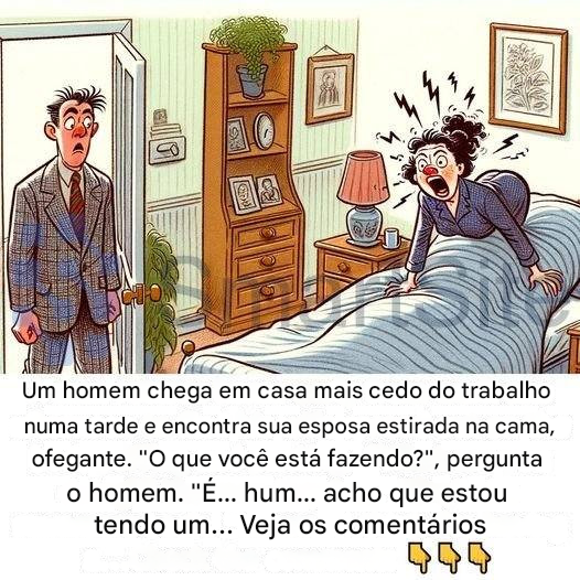 Certo dia, um homem chega mais cedo do trabalho e encontra sua esposa estirada na cama, ofegante.