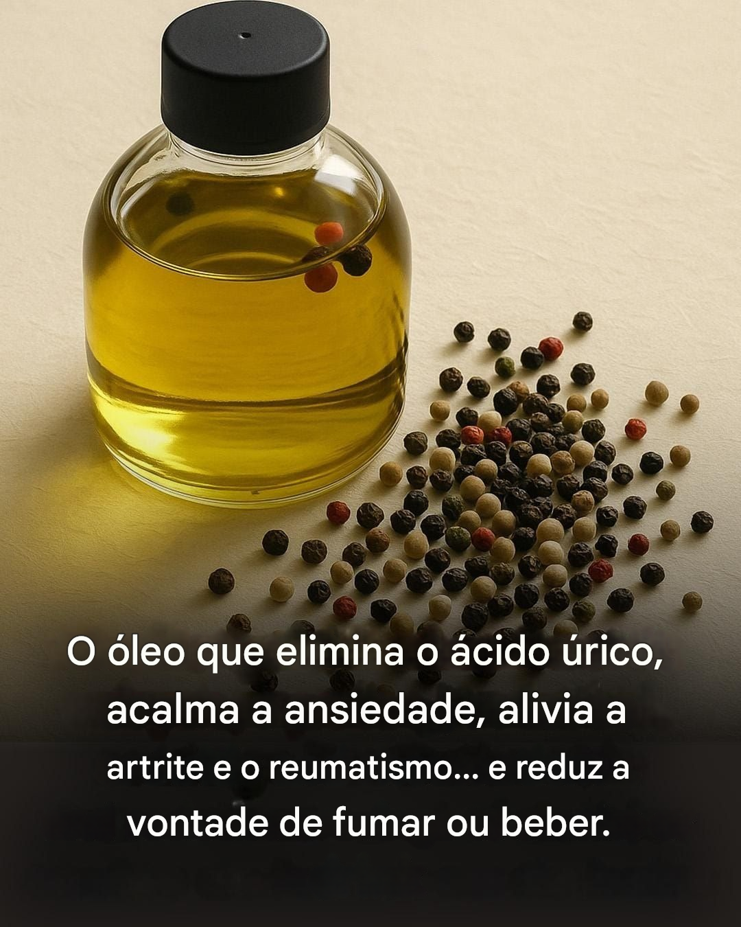 O excesso de ácido úrico pode levar a crises dolorosas de gota ou inflamação nas articulações. O óleo essencial de pimenta-do-reino ajuda a estimular a circulação sanguínea e linfática, auxiliando o processo natural de desintoxicação do corpo. Quando usado em massagens ou aromaterapia, pode ajudar a eliminar toxinas, aliviar dores articulares e restaurar a sensação de leveza e mobilidade.